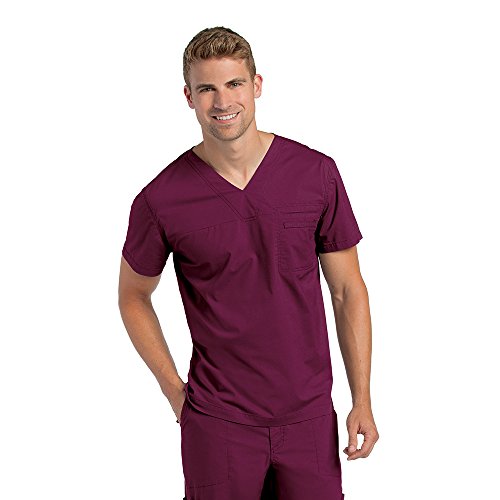 Review Landau Prewashed Scrub Top with Chest Pocket for Men: Modern Tailored Fit, Stretch, V-Neck Medical 7478